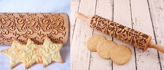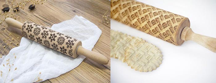 激光雕刻機可以在木材上雕刻各種花紋、圖形、文字,為了烘培師精美點心的制作,便誕生了藝術搟面杖??梢栽邳c心、餅、糖果上印制各種好玩生動的圖案,比起用手工制作圖案,簡直不要太簡單哦!