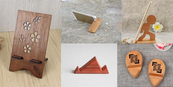 激光雕刻切割的的手機支架包括:木質手機支架、木塑板手機支架、塑料手機支架、亞克力手機支架等。