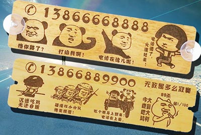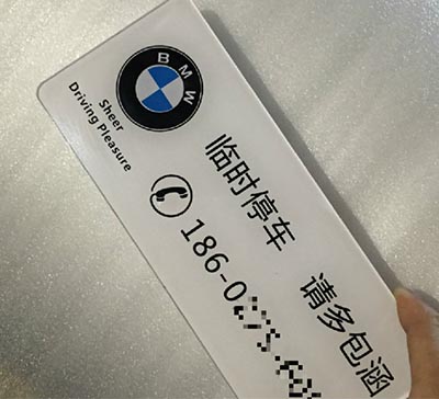 常見的挪車牌是紙牌,手寫上去的,簡單方便,可是不好看。如果主人字跡豪放,那讓人看起數(shù)字就有點(diǎn)不知道幾是幾了,同時(shí)紙牌還比較容易被損壞。為了能搭配起愛車的整體風(fēng)格,激光雕刻的挪車牌更上檔次,還可以根據(jù)自己喜好定制,彰顯個(gè)性化的同時(shí)不失實(shí)用性。