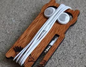 激光雕刻木制、硅膠繞線器,不受形狀、形象設定的限制,激光雕刻機是無接觸加工,對材料沒有機械應力,不會損壞擠壓材料。激光雕刻的繞線器精致美觀,小巧玲瓏,可以簡便工整的將耳機收納其中。