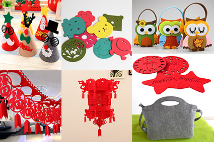 毛氈制品應用行業(yè):婚慶用品(拉花、燈)、工藝品、圣誕用品、手袋、杯墊、地墊、宮燈等制造行業(yè)。