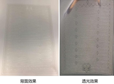 使用大場鏡,可以一次性在材料上布線。由于用單線條去除鋁層,對激光能量要求高,使用60W-LM1激光器可以快速一次性成型。
