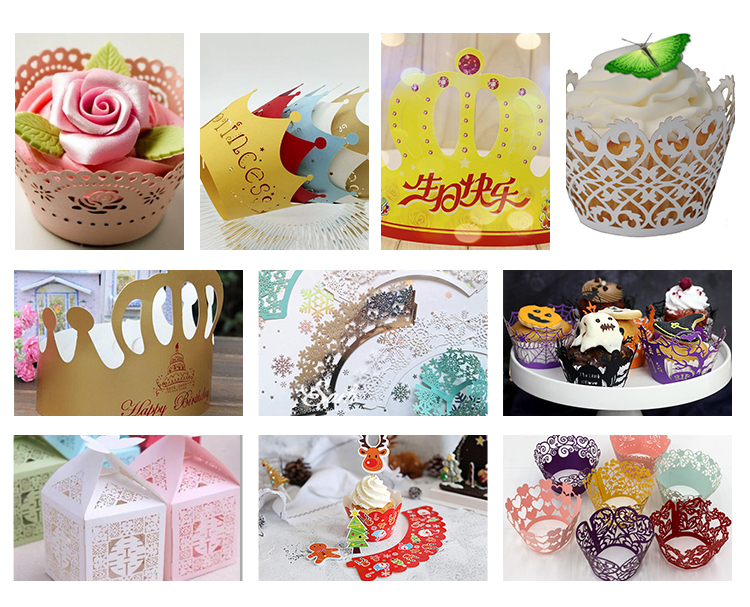美味可口的蛋糕加上獨特的蛋糕裝飾,精美的雕花蛋糕圍邊,再加上蛋糕插牌,可以點亮整個宴會的氛圍。常見的蛋糕插牌和蛋糕圍邊一般以紙質為主,也有亞克力的、PP塑料的以及木質的。采用激光雕刻模切蛋糕裝飾品,高效快捷成本低,任何復雜的圖案只需設計好之后導入電腦操作軟件,數秒鐘可以完成一幅完整的裝飾卡。